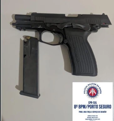 Durante o acompanhamento aos suspeitos, os policiais localizaram um homem alvejado, com 01 (uma) pistola, calibre 9mm, ao seu lado.
