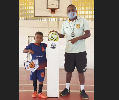 O garotinho Pietro Aguiar, com apenas seis anos de idade já é um astro do futebol juvenil em Porto Seguro.