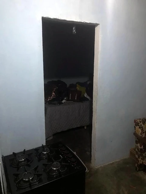 Sala, cozinha, banheiro, um corredor e três quartos e uma pequena área do lado, tem conversa, a casa já está vazia.