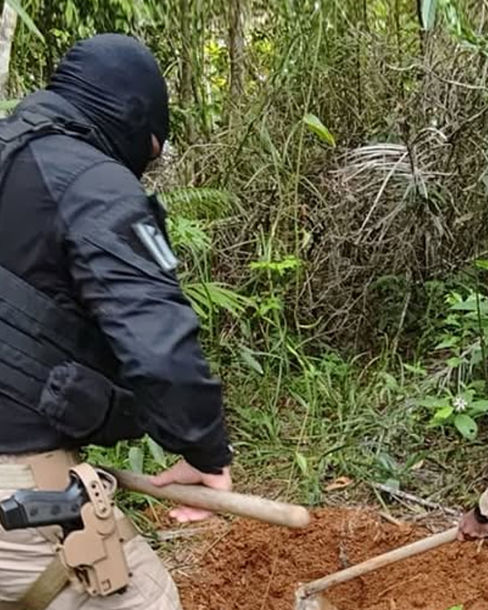 A identificação do cemitério clandestino ocorreu após desdobramentos de uma operação policial realizada no dia 20 de janeiro, voltada ao combate a crimes violentos letais intencionais na região. Na ocasião, policiais da 23ª Coordenadoria Regional de Polícia do Interior (Coorpin), com apoio da Rondesp Extremo Sul e do 28º Batalhão da Polícia Militar, apreenderam armas, rádios comunicadores, celulares, balaclava e roupas camufladas.